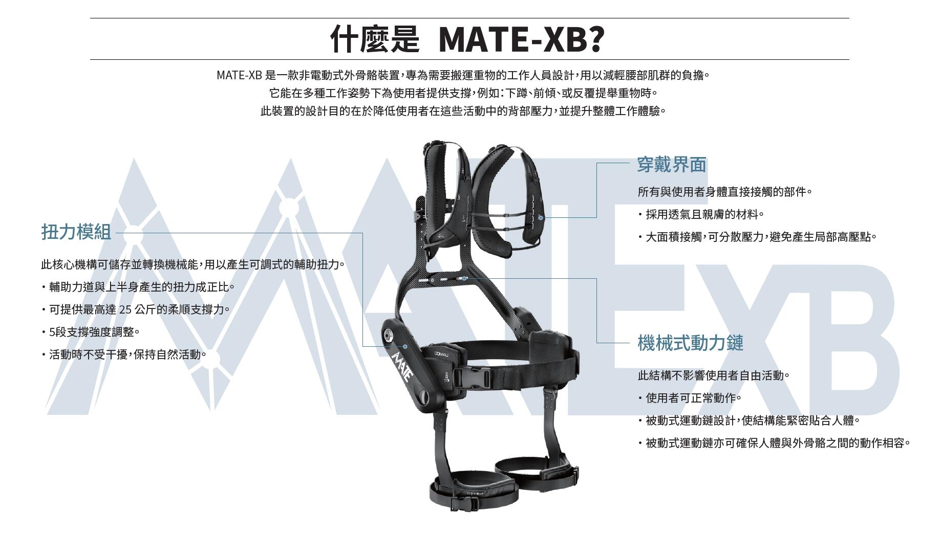 1.MATE-XB 外骨骼套裝易於穿戴,可快速調節以適應幾乎任何體型,專為提升舉重和重複性任務中的人體工學性能而設計。